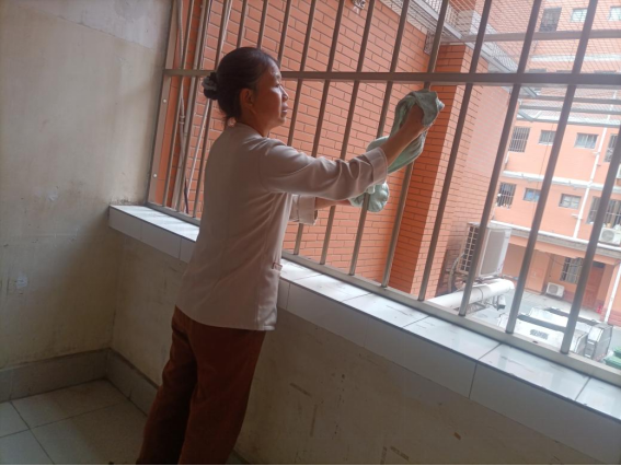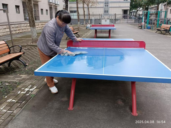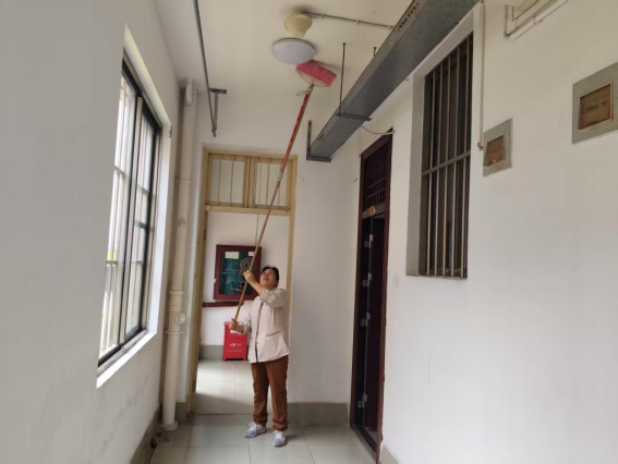 为营造学生公寓园区宜学宜居的环境,认真做好园区内消防设备设施、热水机组、洗涤设备等各种设备设施和40间自习室、15个多功能室的保洁维护工作;做好学生公寓园区内547个生活设施(其中公共长椅147张,乒乓球桌117张,晾衣架173个、健身器材110个)的维护工作。