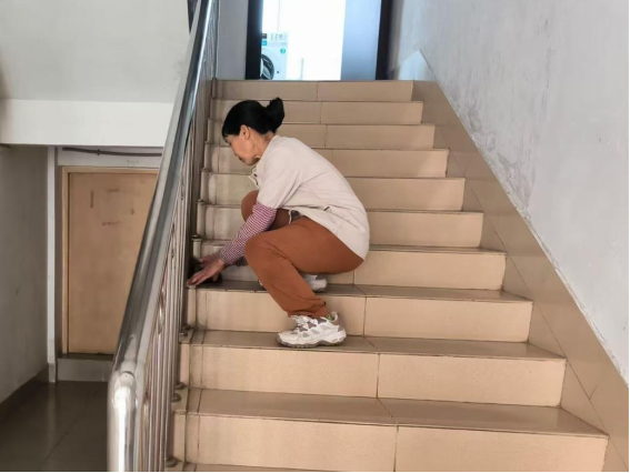 劳动教育岗同学协助阿姨进行楼栋卫生保洁