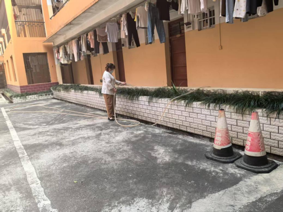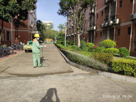 本周对各园区绿植进行一次绿化消杀工作,并对东8-11栋、南区进行绿化养护面积约6634平方米;各园区进行日常保洁约19万平方米,清理明沟水沟长度约3270米。