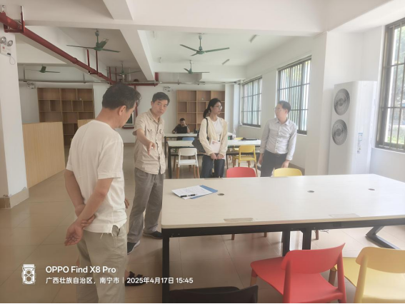 工作人员现场勘查自习室设备设施情况