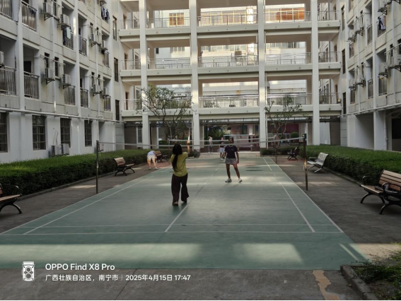 同学们在园区羽毛球场打羽毛球