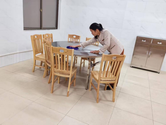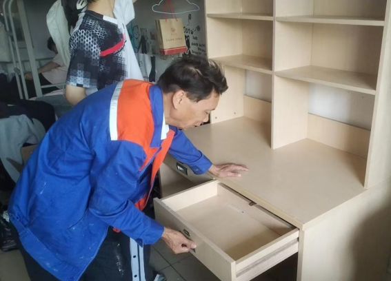 为营造学生公寓园区宜学宜居的环境,认真做好园区内消防设备设施、热水机组、洗涤设备等各种设备设施和40间自习室、15个多功能室的保洁维护工作;做好学生公寓园区内547个生活设施(其中公共长椅147张,乒乓球桌117张,晾衣架173个、健身器材110个)的维护工作。