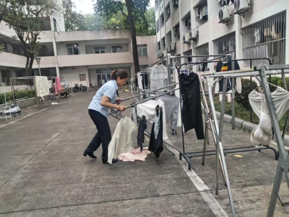 帮助学生晾晒衣物