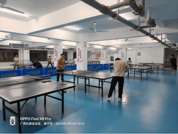 同学们在园区乒乓球馆打乒乓球
