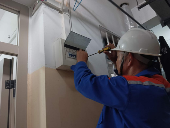 逐间对配电房进行线路排查,拧紧螺丝工作