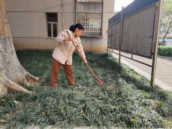 清扫绿化带的落叶