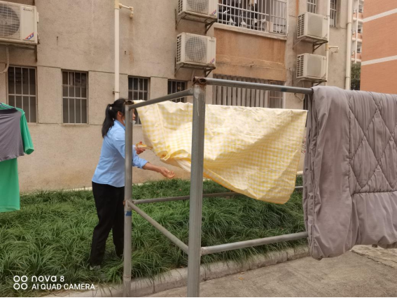帮助学生晾晒被褥