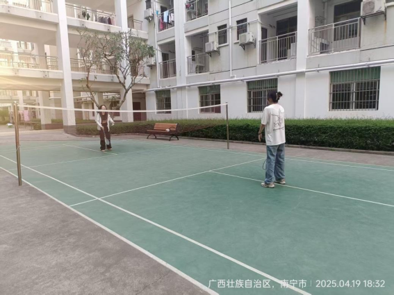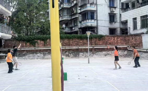 同学们在园区羽毛球场打羽毛球