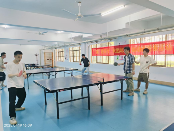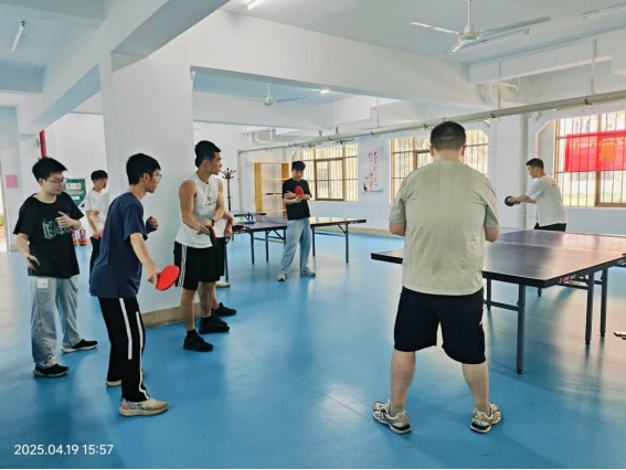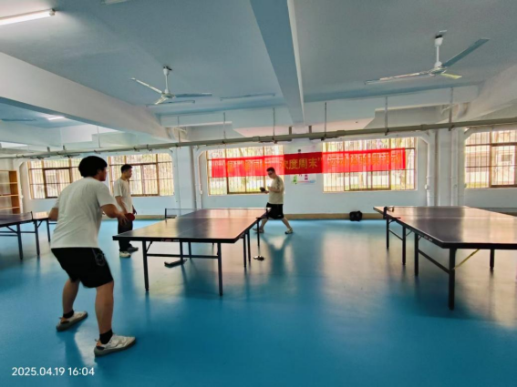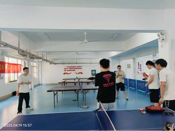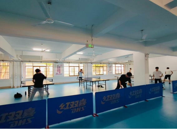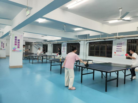 同学们在园区乒乓球馆打乒乓球
