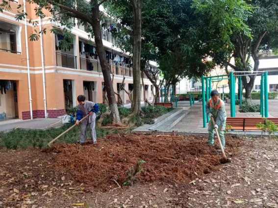劳动教育岗同学参与园区空地翻整工作