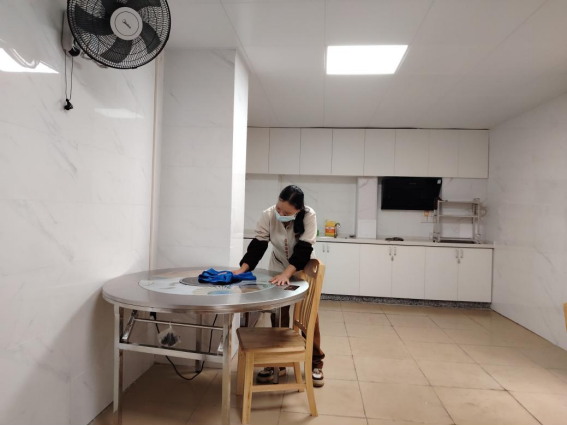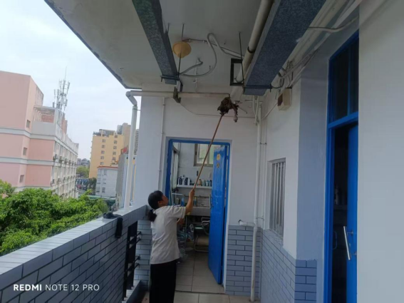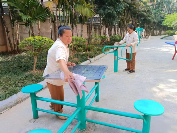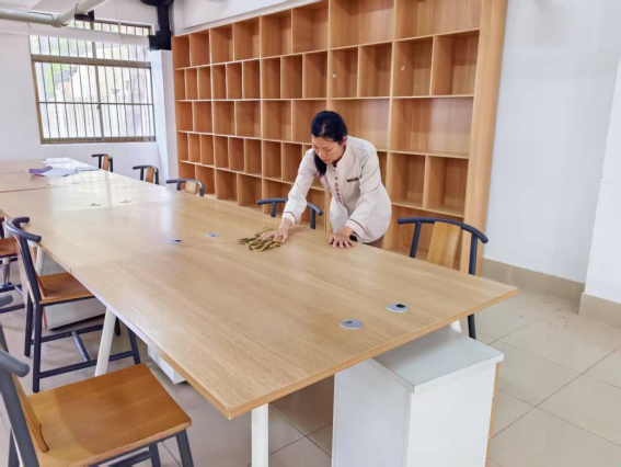 为营造学生公寓园区宜学宜居的环境,认真做好园区内消防设备设施、热水机组、洗涤设备等各种设备设施和40间自习室、15个多功能室的保洁维护工作;做好学生公寓园区内547个生活设施(其中公共长椅147张,乒乓球桌117张,晾衣架173个、健身器材110个)的维护工作。