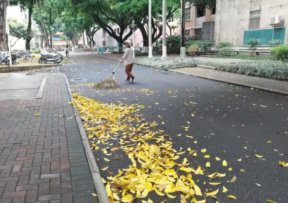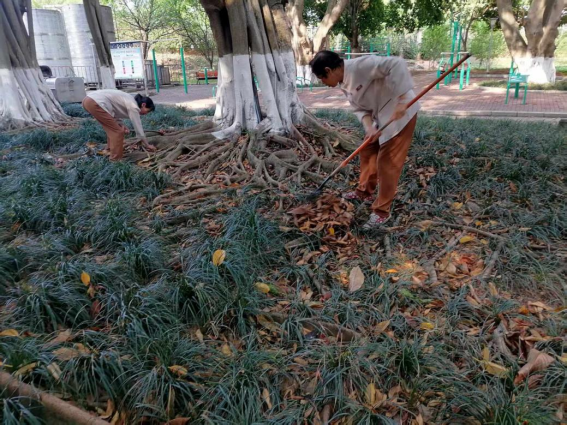 清理绿化带落叶