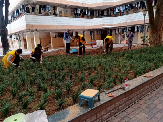 劳动教育岗同学参与园区绿植补种工作