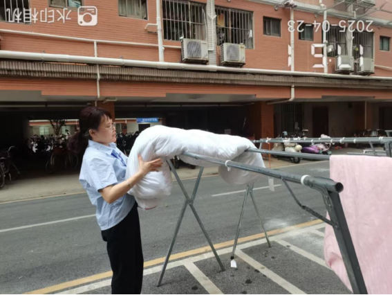 帮助学生收回晾晒衣物