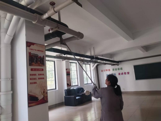 劳动教育岗协助阿姨排查设施设备工作