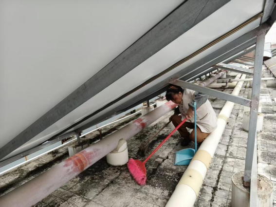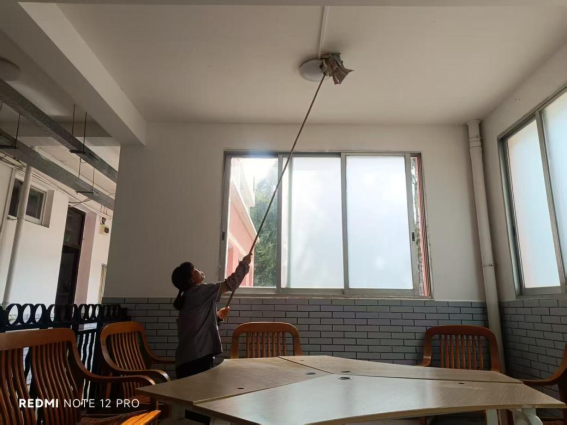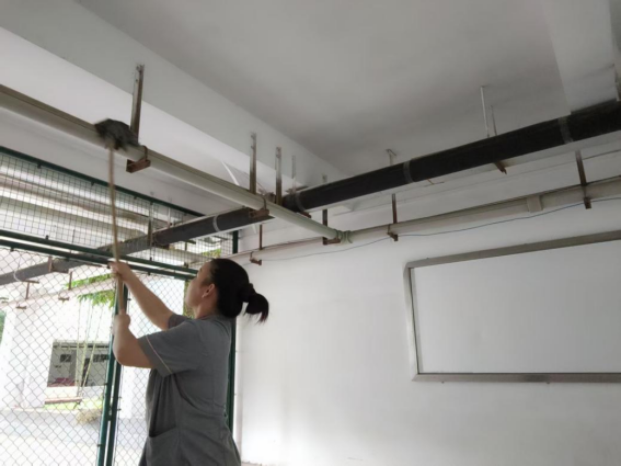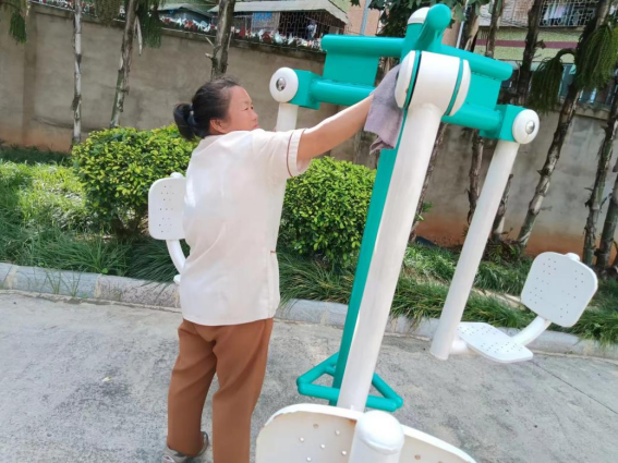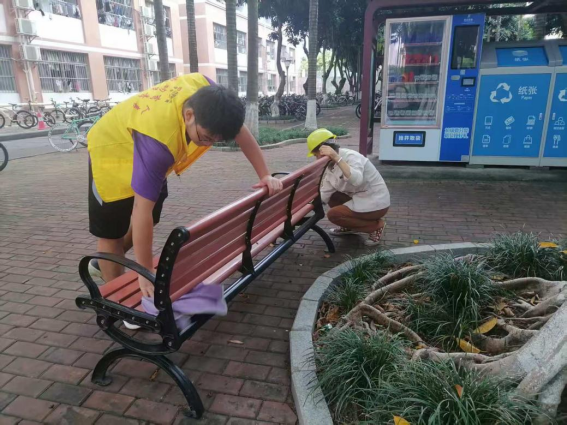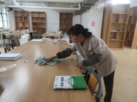 为营造学生公寓园区宜学宜居的环境,认真做好园区内消防设备设施、热水机组、洗涤设备等各种设备设施和41间自习室、15个多功能室的保洁维护工作;做好学生公寓园区内547个生活设施(其中公共长椅147张,乒乓球桌117张,晾衣架173个、健身器材110个)的维护工作。