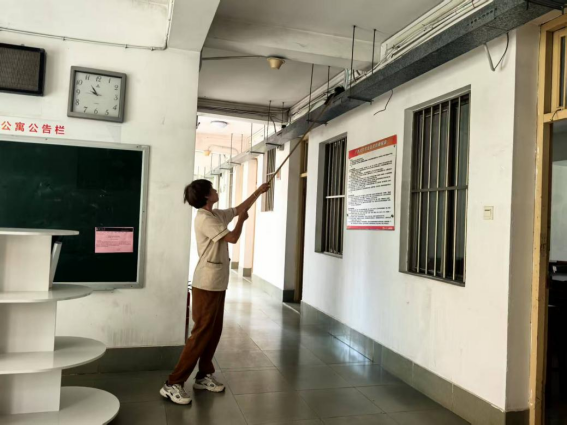学生公寓严格落实假期各楼栋安全巡查工作,逐一对围墙、高大树木、门窗、水电设施、消防设施设备等展开了一系列的安全检查工作,并做好工作巡查与记录。
