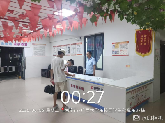 春季第十五周学生公寓各项服务工作有序开展,本周走访学生207人次;办理宿舍业务6970人次(其中办理外宿11人,调宿学生8人,新入住学生5人, 晚归登记6840人次,其他业务106人);完成留学生大楼固定资产核查工作。