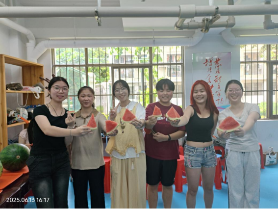 同学们开心分享西瓜