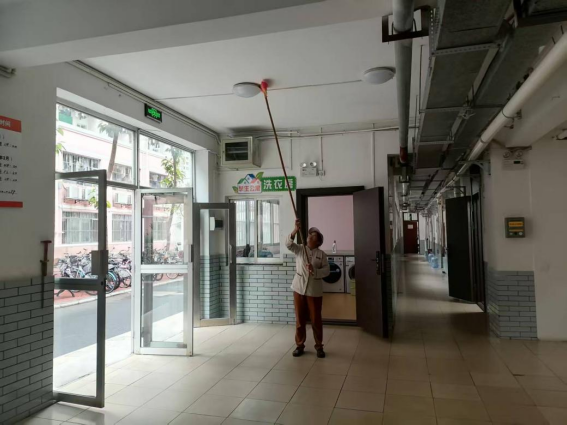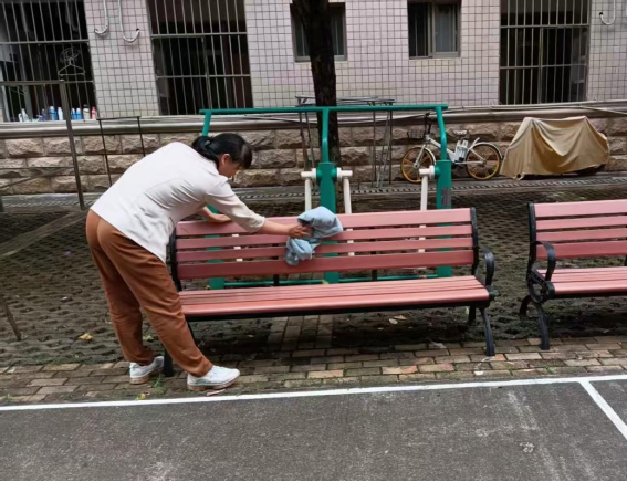 为营造学生公寓园区宜学宜居的环境,认真做好园区内消防设备设施、热水机组、洗涤设备等各种设备设施和41间自习室、15个多功能室的保洁维护工作;做好学生公寓园区内547个生活设施(其中公共长椅147张,乒乓球桌117张,晾衣架173个、健身器材110个)的维护工作。