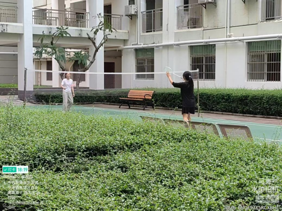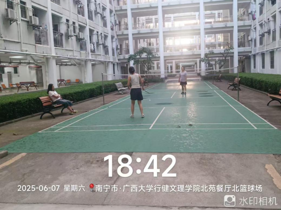 同学们在园区羽毛球场打羽毛球