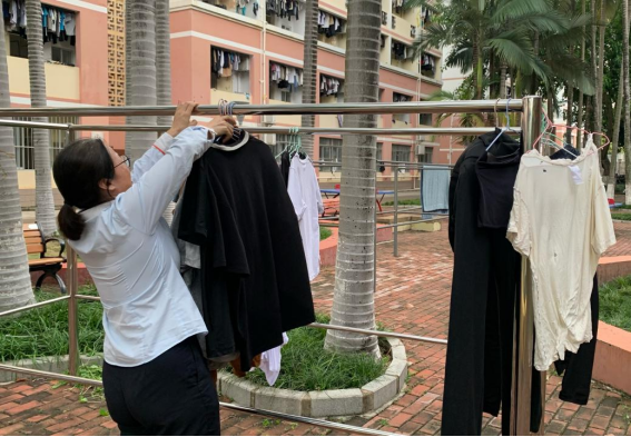 帮助学生整理晾晒的衣物