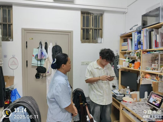 春季第十六周学生公寓各项服务工作有序开展,本周走访学生216人次;办理宿舍业务7098人次(其中办理外宿15人,调宿学生5人,新入住学生1人,毕业退宿5人, 晚归登记6959人次,其他业务113人);召开学生宿舍工作会议;现场探勘2025年毕业生腾空房修缮项目等。