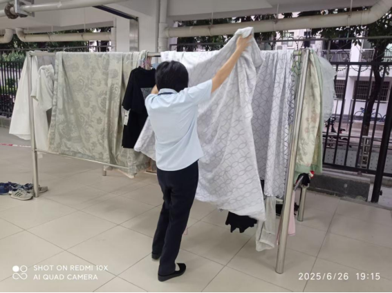 帮助学生整理晾晒的衣物