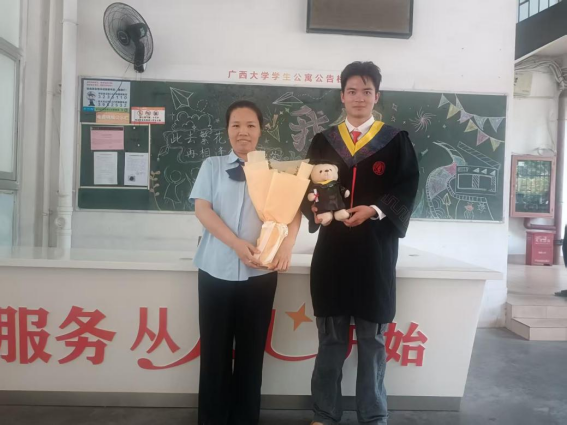毕业生与宿管阿姨合影
