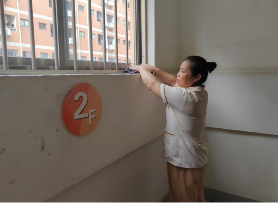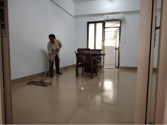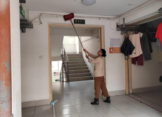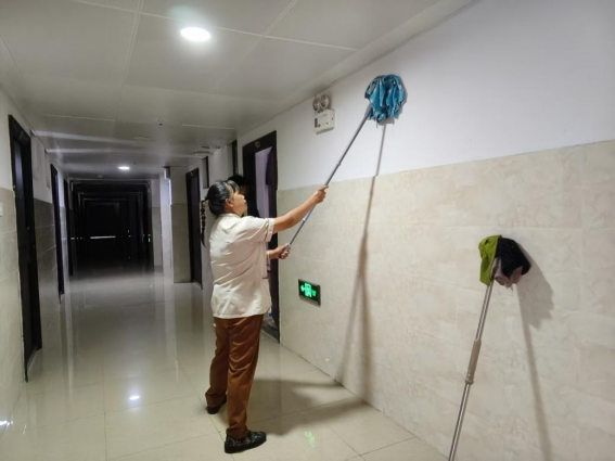 为营造学生公寓园区宜学宜居的环境,认真做好园区内消防设备设施、热水机组、洗涤设备等各种设备设施和41间自习室、15个多功能室的保洁维护工作;做好学生公寓园区内547个生活设施(其中公共长椅147张,乒乓球桌117张,晾衣架173个、健身器材110个)的维护工作。