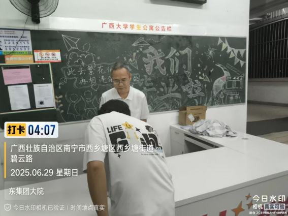 春季第十九周学生公寓各项服务工作有序开展,本周走访学生 221 人次;办理宿舍业务 7337 人次(其中办理外宿 37人,调宿学生 21人,新入住学生4人,晚归登记 6541 人次,办理退宿及毕业审核572人,其他业务162人)。7月1日,移交 2025 年毕业生腾空房修缮项目修缮房间钥匙 2720把。