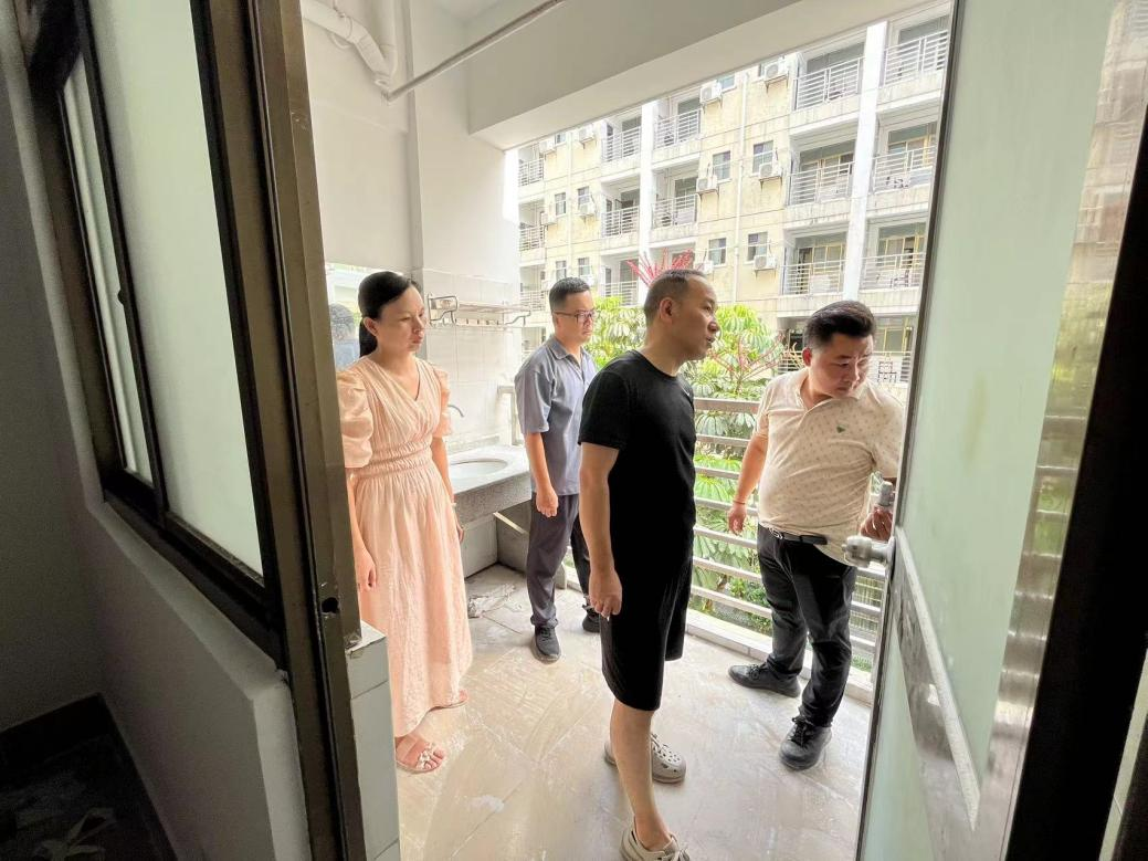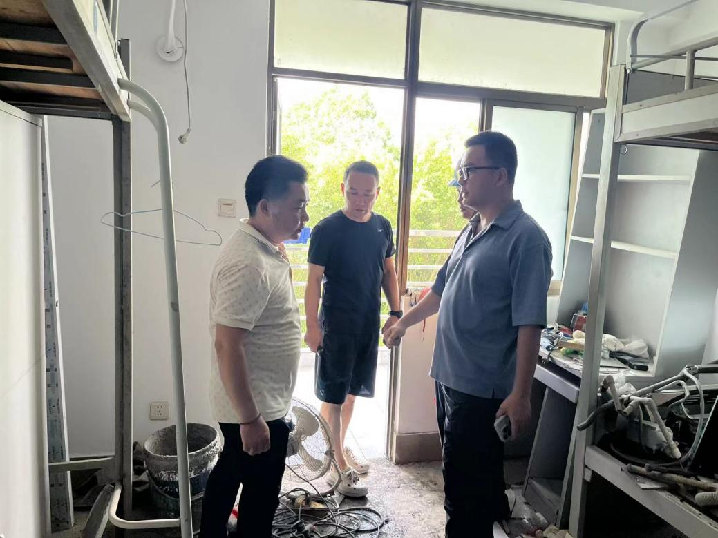 暑假期间,校领导率先垂范,多次深入学生公寓施工一线,实地察看工程进度、检查施工质量,现场作出重要指示,为暑期公寓改造与保障工作锚定方向、压实责任。
