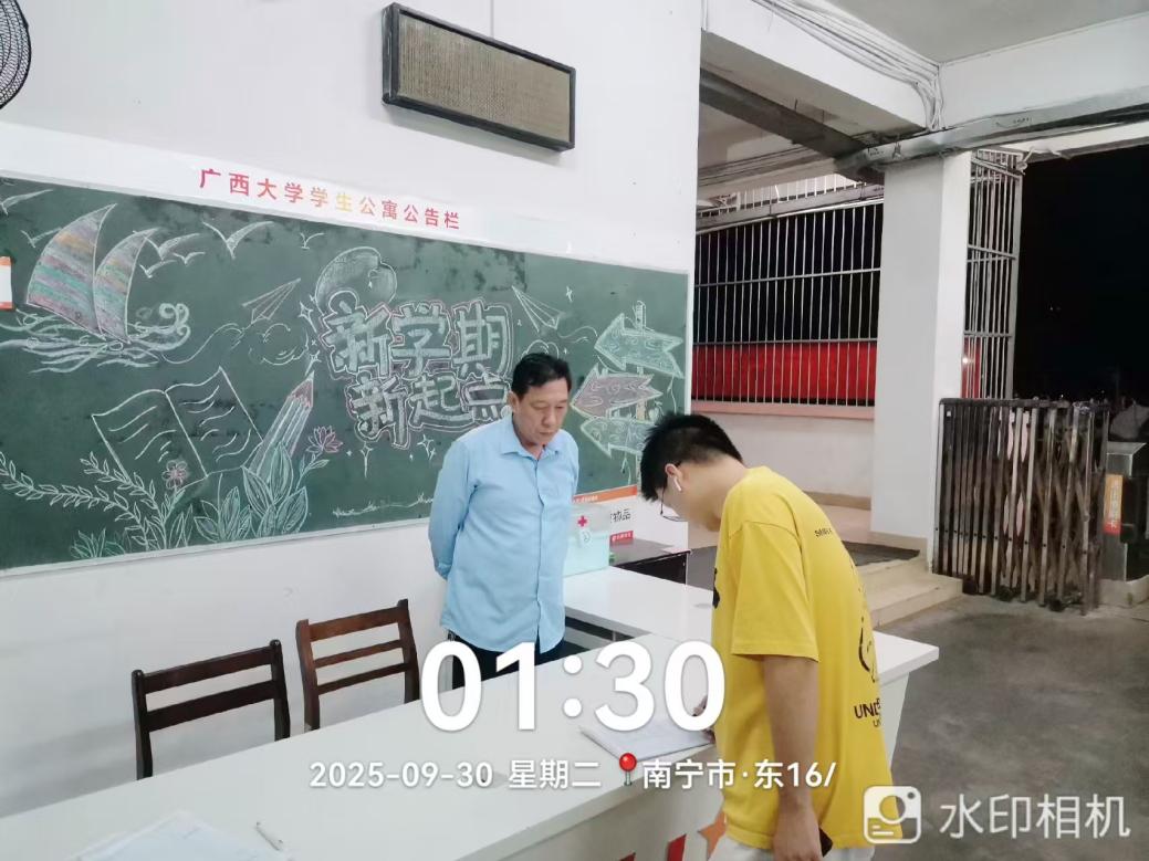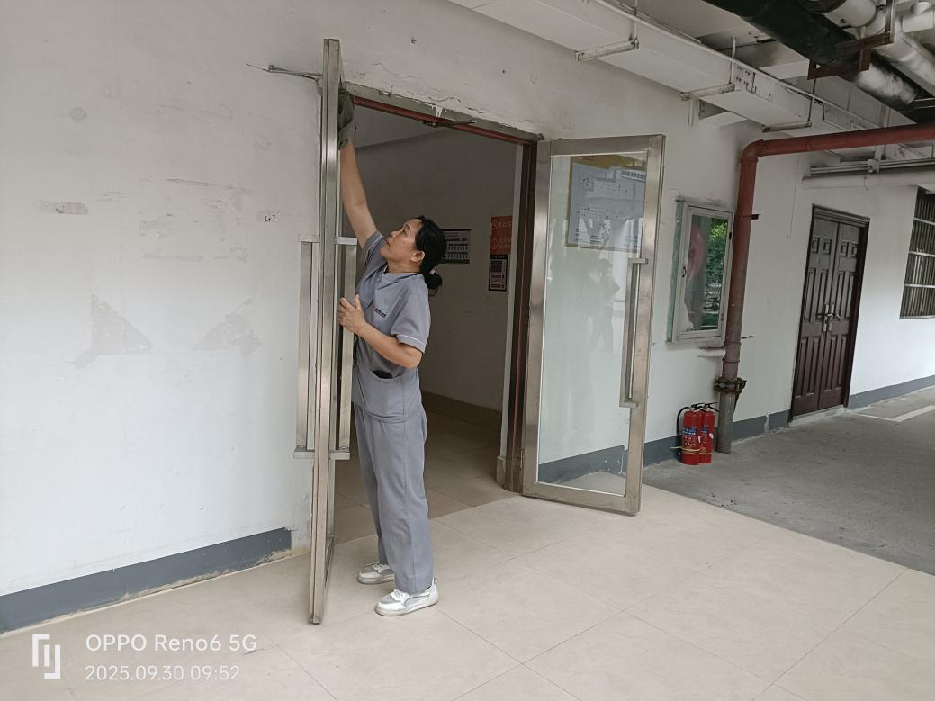 学生公寓严格落实假期前各楼栋安全巡查工作,逐一对围墙、高大树木、门窗、水电设施、消防设施设备等展开了一系列的安全检查工作,并做好工作巡查与记录。