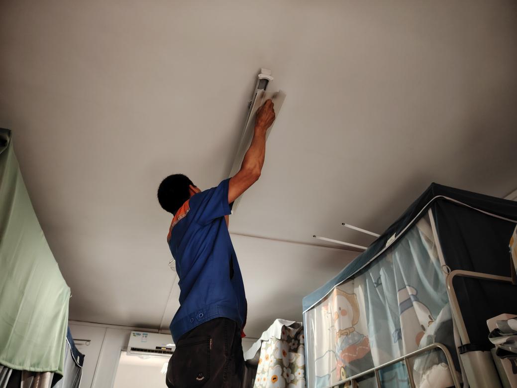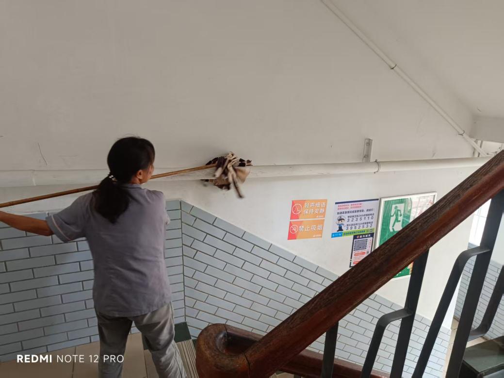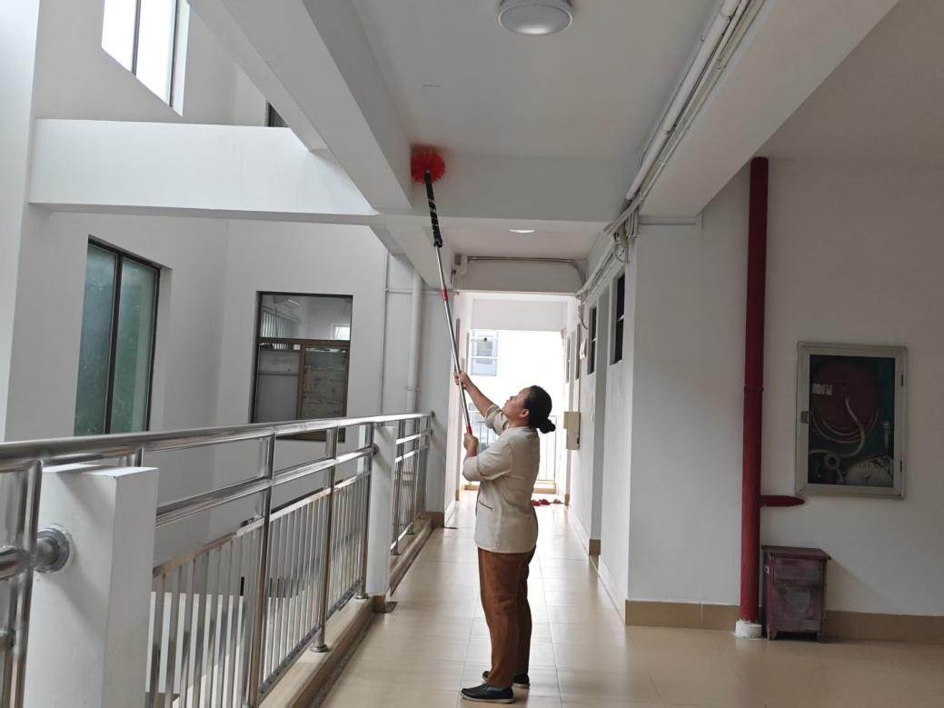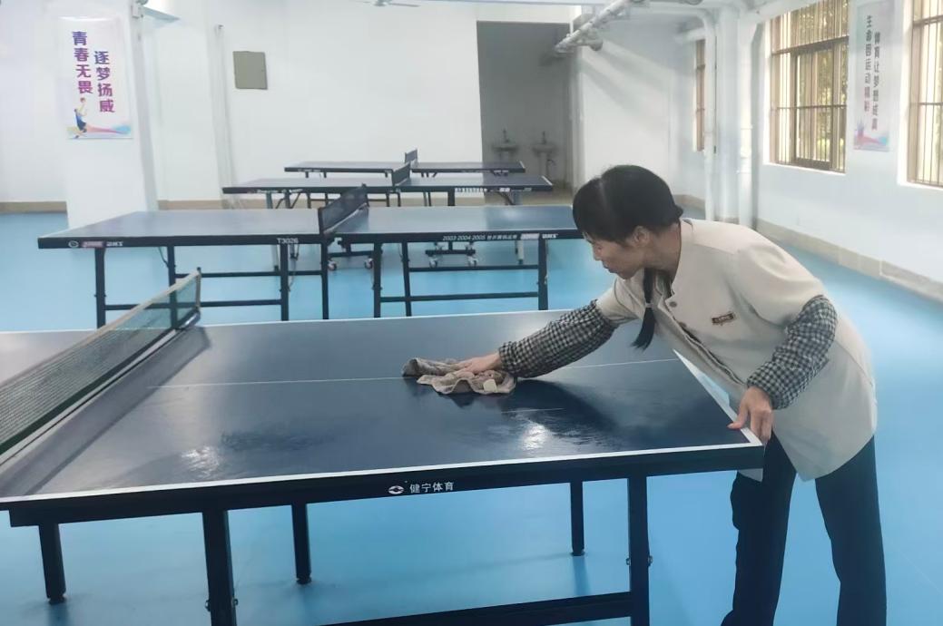 为营造学生公寓园区宜学宜居的环境,认真做好园区内消防设备设施、热水机组、洗涤设备等各种设备设施和41间自习室、18个多功能室的保洁维护工作;做好学生公寓园区内547个生活设施(其中公共长椅147张,乒乓球桌117张,晾衣架173个、健身器材110个)的维护工作。