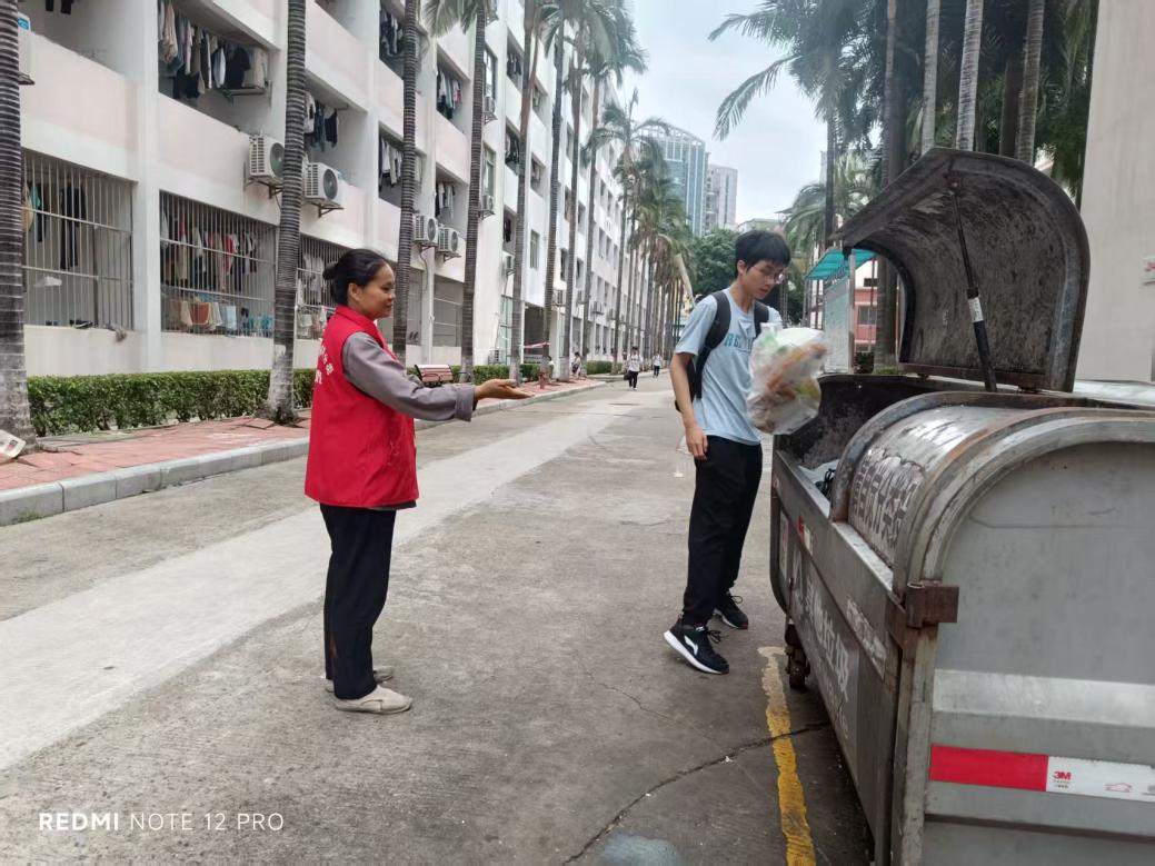 本周垃圾分类督导员共处理垃圾约43.4625吨,其中厨余垃圾约20.86吨、其他垃圾约22.60吨,有害垃圾约0.0025吨;垃圾分类督导员走访学生宿舍并发放垃圾分类宣传单187张,向223位同学宣传垃圾分类知识。