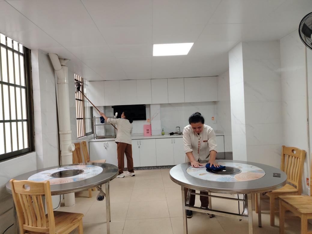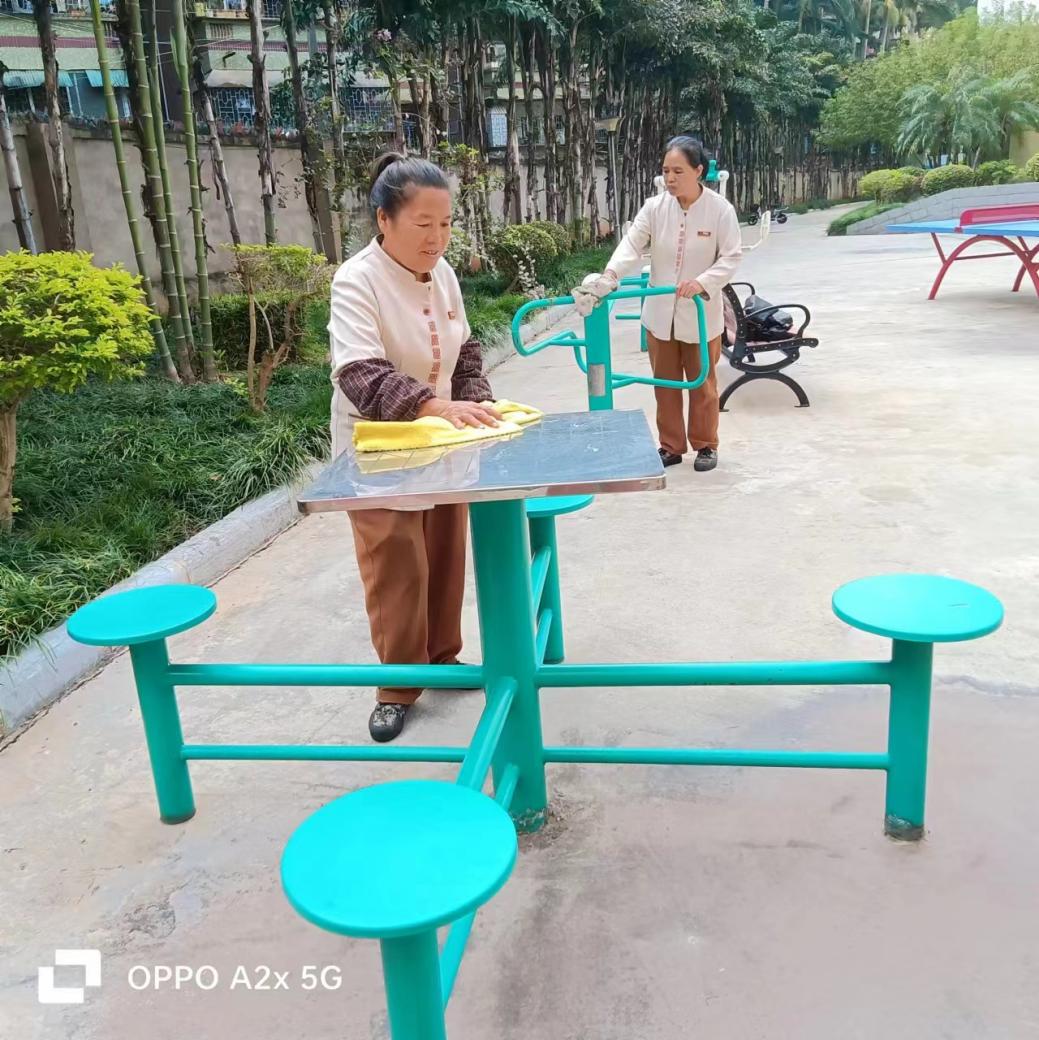 为营造学生公寓园区宜学宜居的环境,认真做好园区内消防设备设施、热水机组、洗涤设备等各种设备设施和41间自习室、15个多功能室的保洁维护工作;做好学生公寓园区内547个生活设施(其中公共长椅147张、乒乓球桌117张、晾衣架173个、健身器材110个)的维护工作。
