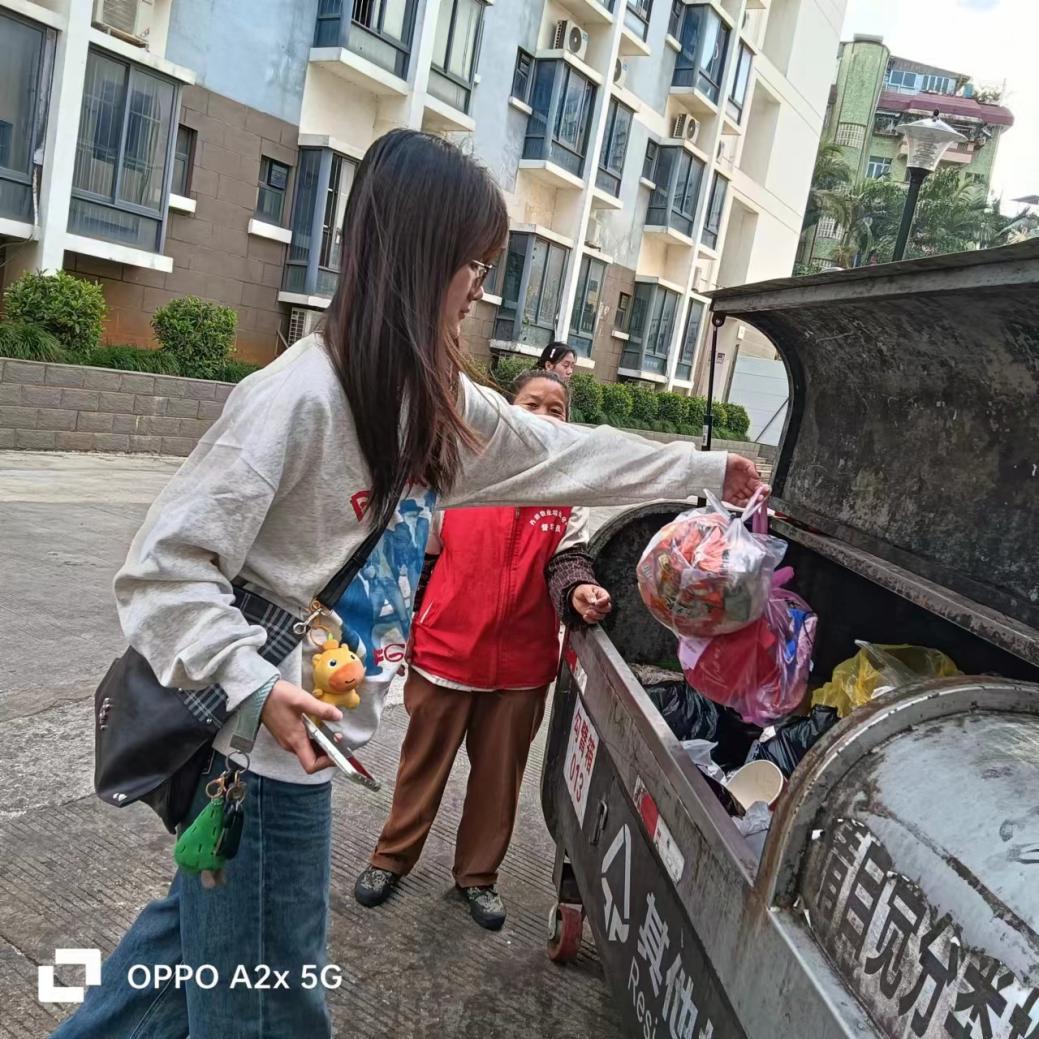 本周垃圾分类督导员共处理垃圾约49.9625吨,其中厨余垃圾约23.98吨、其他垃圾约25.98吨,有害垃圾约0.0025吨;垃圾分类督导员走访学生宿舍并发放垃圾分类宣传单213张,向274位同学宣传垃圾分类知识。
