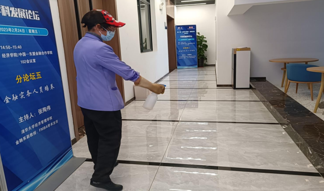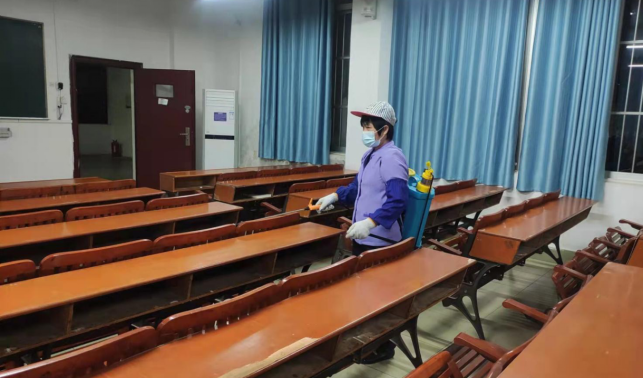 2、对公共教学楼宇的楼梯、走廊、门把手、课桌椅、电脑键盘、鼠标、水龙头、楼梯扶手、电梯间及按钮等高频接触表面进行重点杀菌消毒1104次。