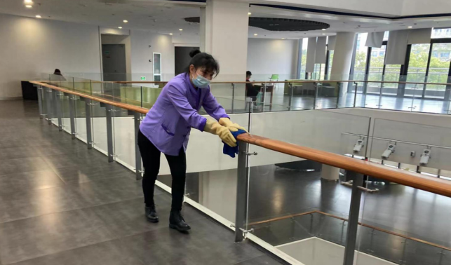 每日对校办楼、君武馆、新东园勤恳楼(后勤)、财务处、办公楼、大学生活动中心、保卫处等办公楼宇进行日常卫生保洁等服务工作。