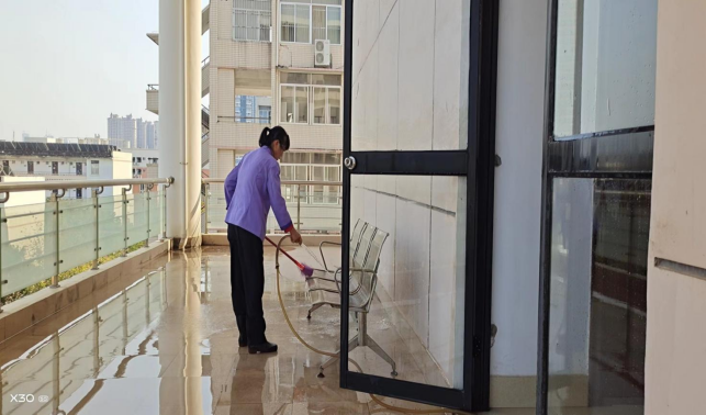 每日对语言中心、二教、三教、六教、十教、十一教、研究生院和行健学院一教、二教、三教、四教共11栋教学楼宇进行日常卫生保洁服务工作。