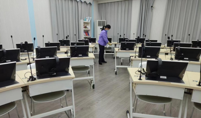 本周协助继续教育学院做好2023年3月中小学教师资格证考试、协助教务处做好2022年全国英语四六级考试(加试)各项工作。检查调试考试供电、灯光、风扇(空调)、施铃、监控等设备,做好教室的开放管理、保洁卫生、防疫消杀等保障工作。