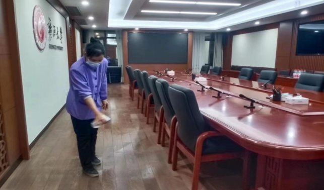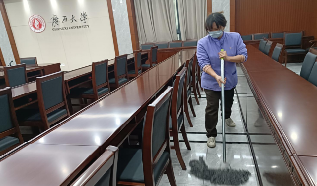 每日对校办楼、君武馆、新东园勤恳楼(后勤)、财务处、办公楼、大学生活动中心、保卫处等办公楼宇进行日常卫生保洁等服务工作。