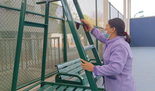 每日对东体育馆、网球中心、体育学院进行日常卫生保洁工作。