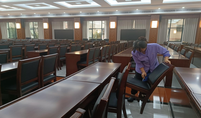 本周做好会场布置、会前、会后保洁及会务各项服务共计11场,其中重要接待2场。