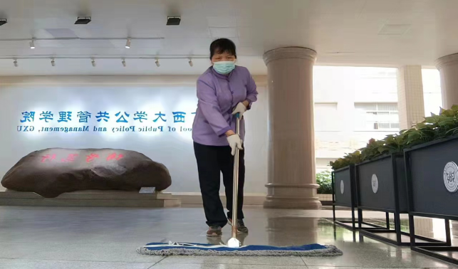 本周对校办楼、君武馆、新东园勤恳楼(后勤)、财务处、办公楼、大学生活动中心、保卫处等办公楼宇进行日常卫生保洁等服务工作。