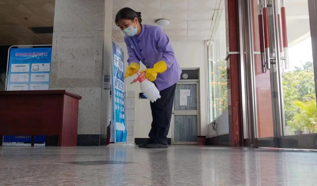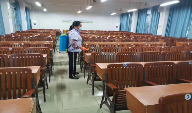 本周对公共教学楼宇的楼梯、走廊、门把手、课桌椅、电脑键盘、鼠标、水龙头、楼梯扶手、电梯间及按钮等高频接触表面进行重点杀菌消毒868次。