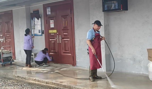 本周对语言中心、二教、三教、六教、十教、十一教、研究生院和行健学院一教、二教、三教、四教共11栋教学楼宇进行日常卫生保洁服务工作,清理公共楼宇排水设施49次,冲洗公共楼宇露天区域5栋;清理公共楼宇天台33栋。