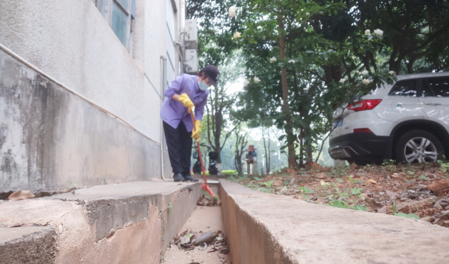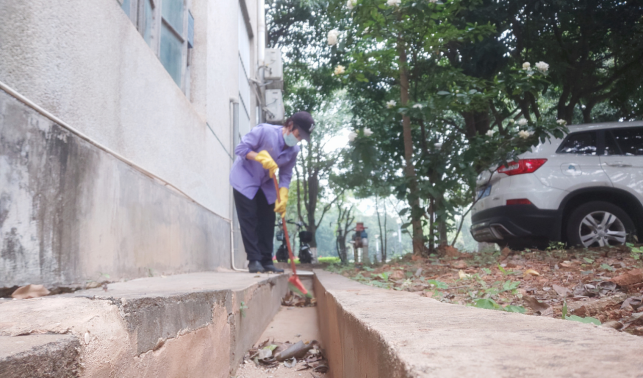 清理社区楼楼宇外围排水设施