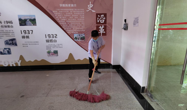本周对土木学院、农学院、物理学院、资环材学院、国际学院等30余栋学院楼宇进行日常卫生保洁工作。