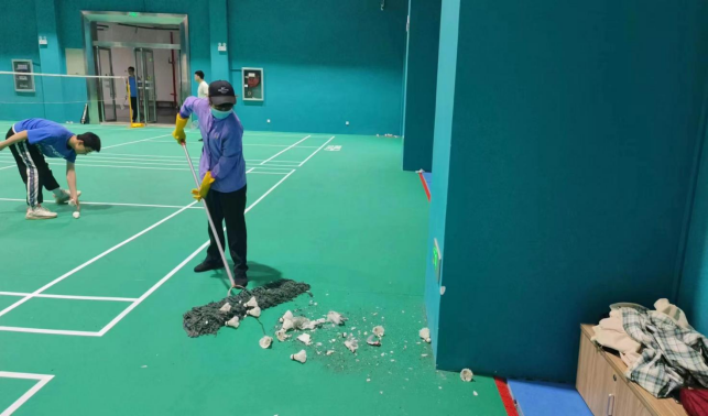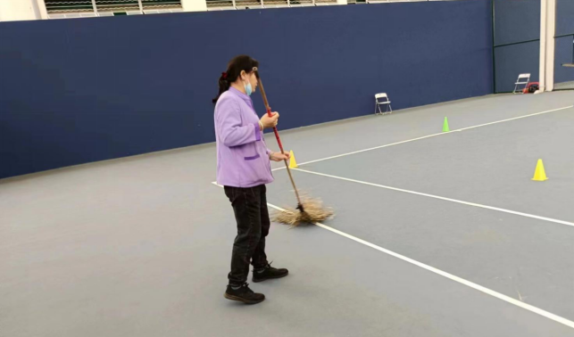 本周对东体育馆、网球中心、体育学院进行日常卫生保洁工作。